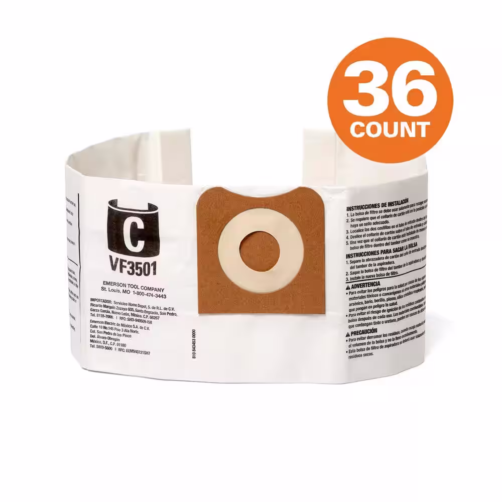 RIDGID High-Eff. Wet/Dry Vac Dry Pick-up Only Dust Bags for 3 to 4.5 Gallon and HD06001 RIDGID Shop Vacuums, Size C (36-Pack)
