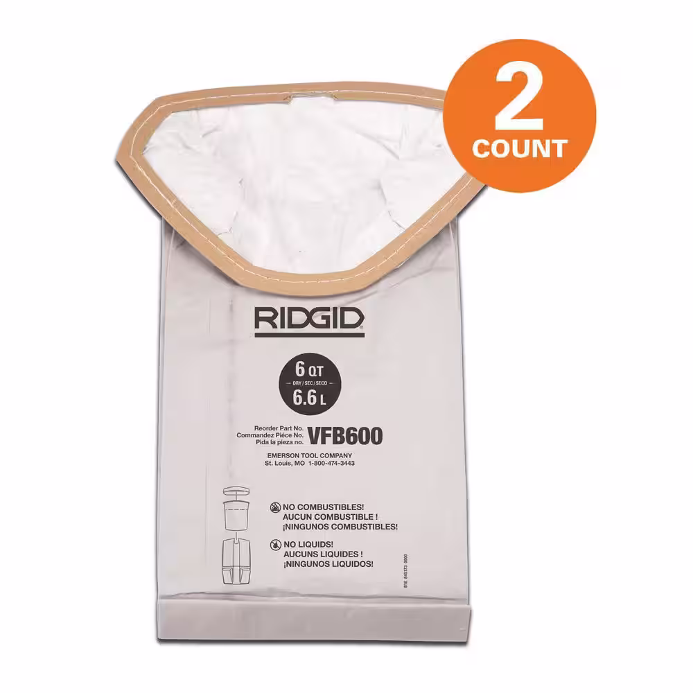 RIDGID Replacement Dry Pick-up Only General Debris Filter Bags for RIDGID 6 Quart NXT Backpack Vacuum HDB600 (2-Pack)