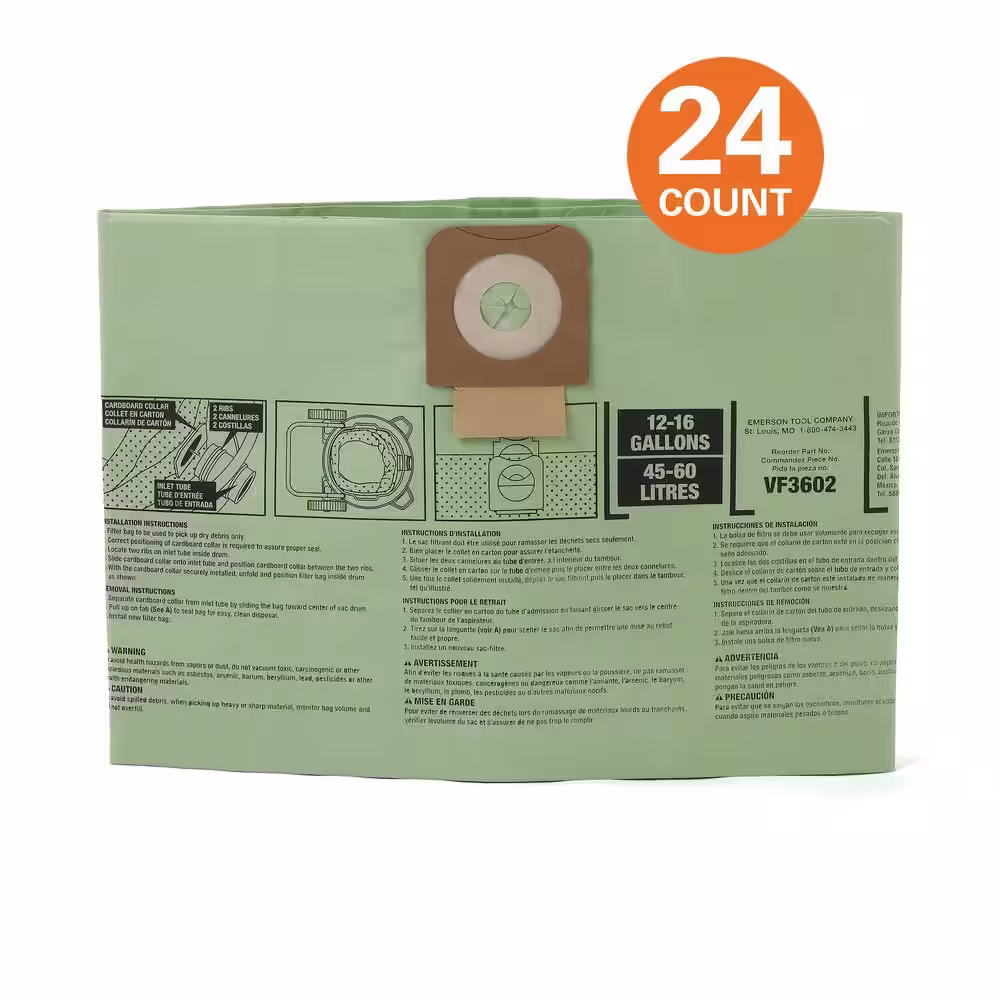RIDGID Wet/Dry Vac Premium Cyclonic Dry Pick-up Only Dust Bags for Select 12 to 16 Gallon RIDGID Shop Vacuums, Size A (24-Pack)