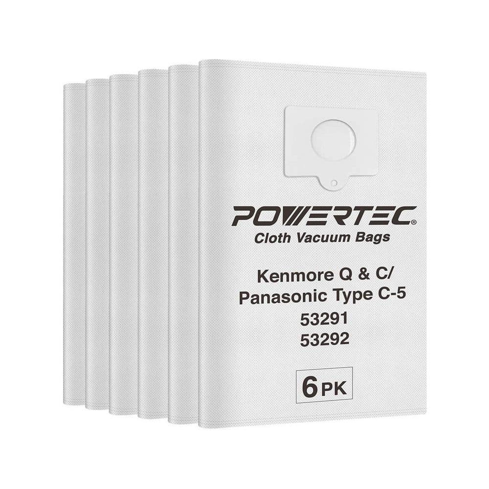 POWERTEC HEPA Cloth Vacuum Bag Replacement for Kenmore Q and C Style Vacuums, and Panasonic Type C-5 (6-Pack)