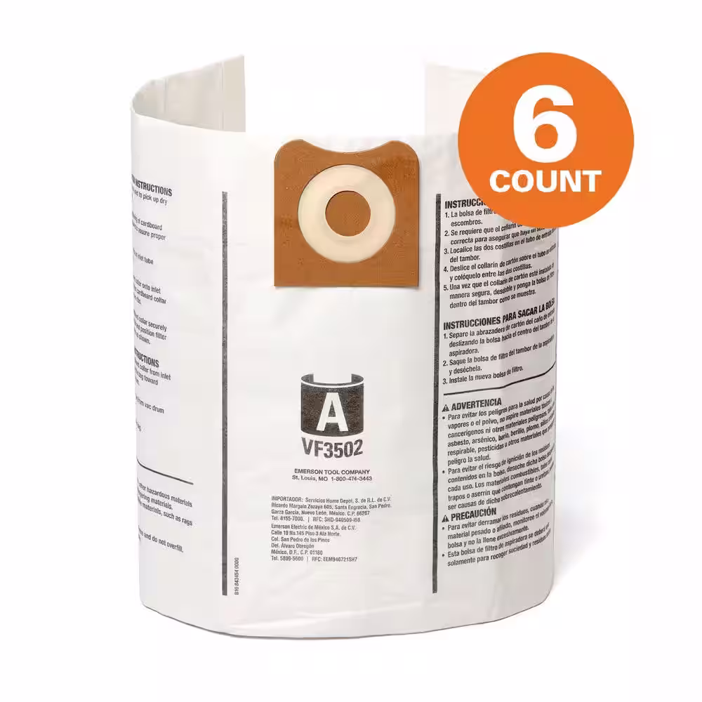 RIDGID High-Efficiency Wet/Dry Vac Dry Pick-up Only Dust Bags for Select 12 to 16 Gallon RIDGID Shop Vacuums, Size A (6-Pack)
