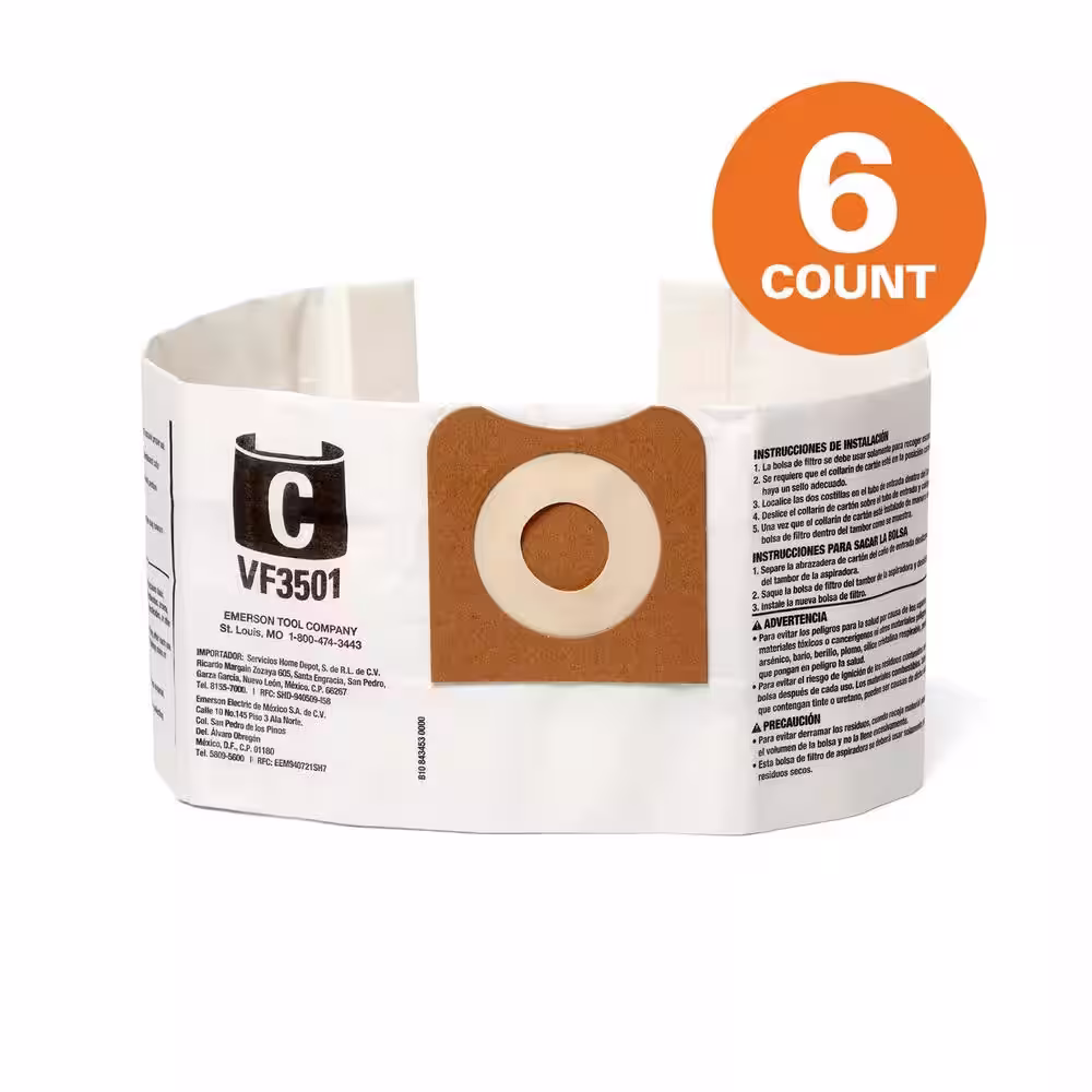 RIDGID High-Efficiency Wet/Dry Vac Dry Pick-up Only Dust Bags for 3 to 4.5 Gal and HD06001 RIDGID Shop Vacuums, Size C (6-Pack)