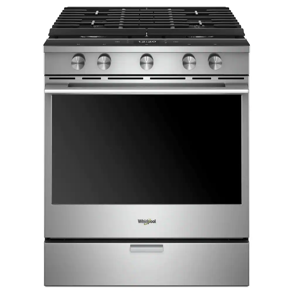 Whirlpool 5.8 cu. ft. Smart Contemporary Handle Slide-in Gas Range with Air Fry With Connection in Stainless Steel