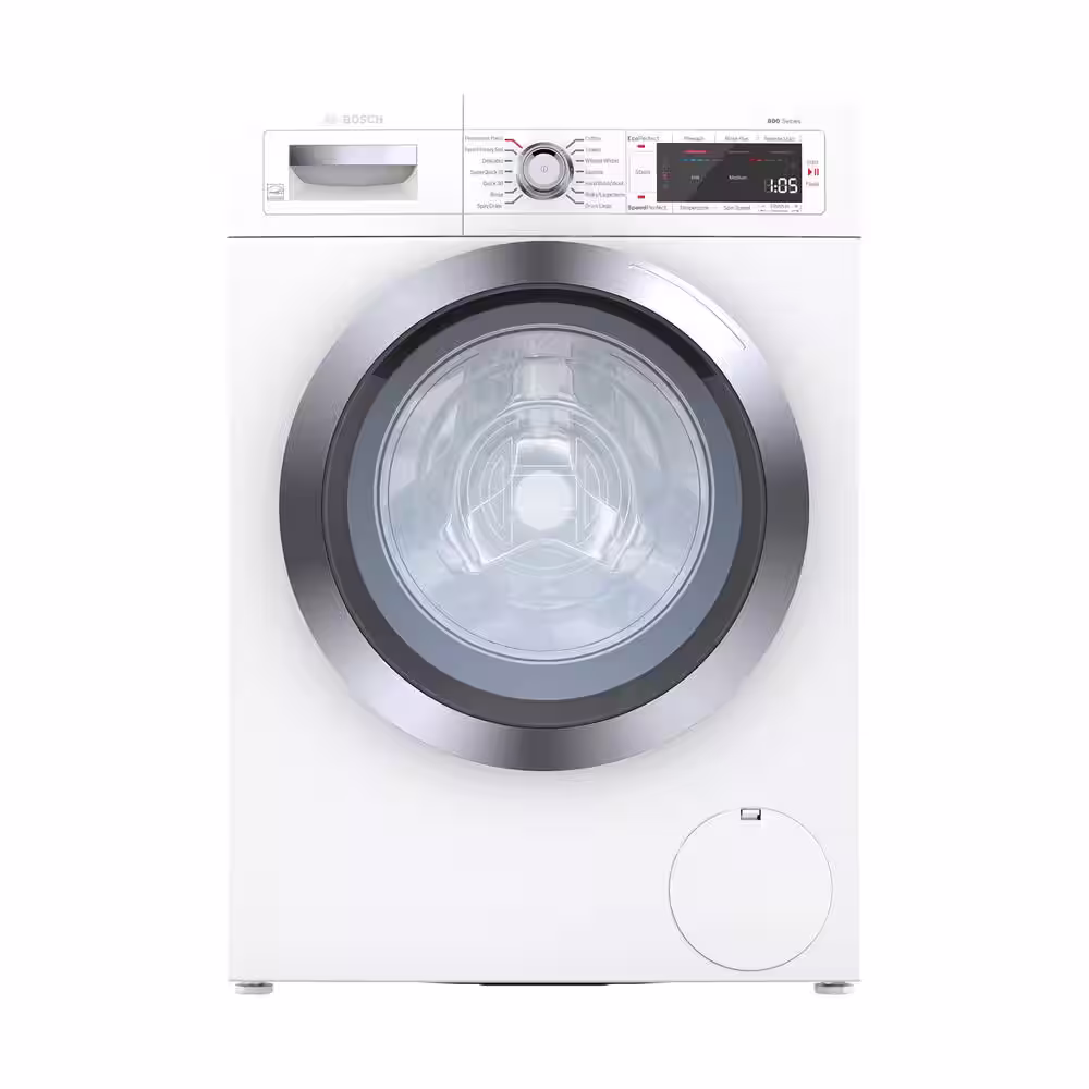 Bosch 800 Series 24 in. 2.2 cu. ft. 240-Volt White with Chrome Accents High-Efficiency Front Load Smart Washer, ENERGY STAR