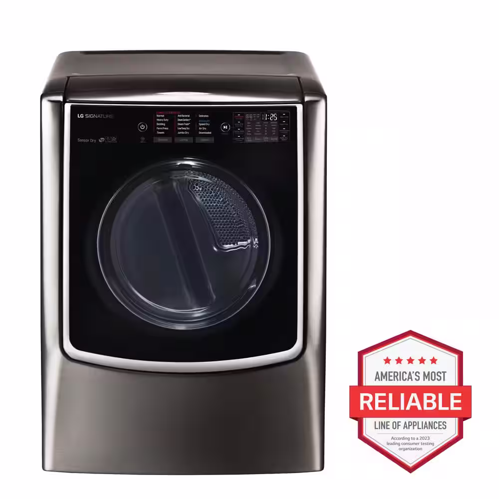 LG SIGNATURE 9.0 cu. ft. Vented SMART Gas Dryer in Black Stainless Steel with Touch Control Panel and TurboSteam