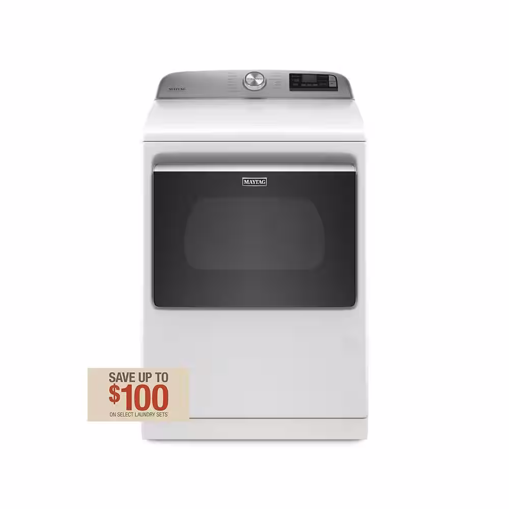 Maytag 7.4 cu. ft. 120-Volt Smart Capable White Gas Vented Dryer with Steam and Hamper Door, ENERGY STAR