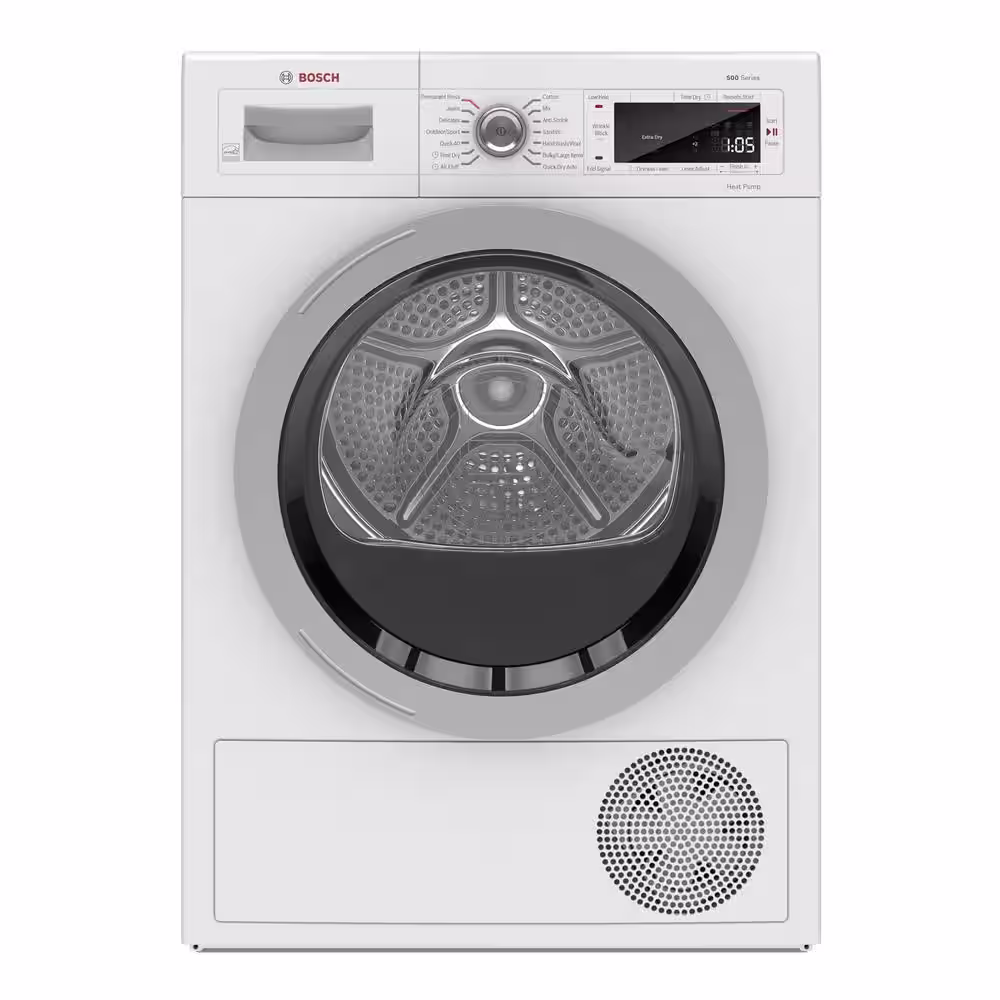 Bosch 500 Series 4 cu. ft. 240-Volt Home Connect White Stackable Electric Ventless Heat Pump Compact Dryer, ENERGY STAR