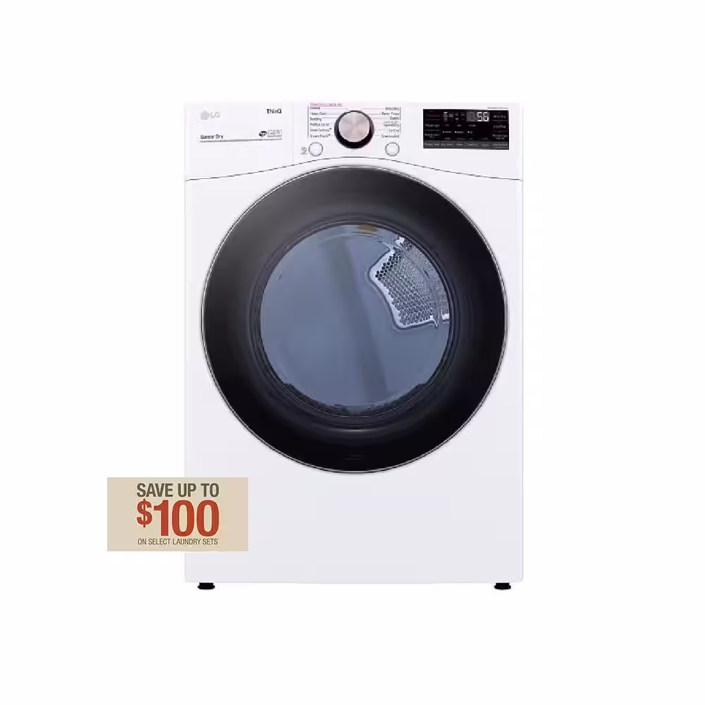 LG 7.4 Cu. Ft. Vented SMART Stackable Gas Dryer in White with TurboSteam and Sensor Dry Technology