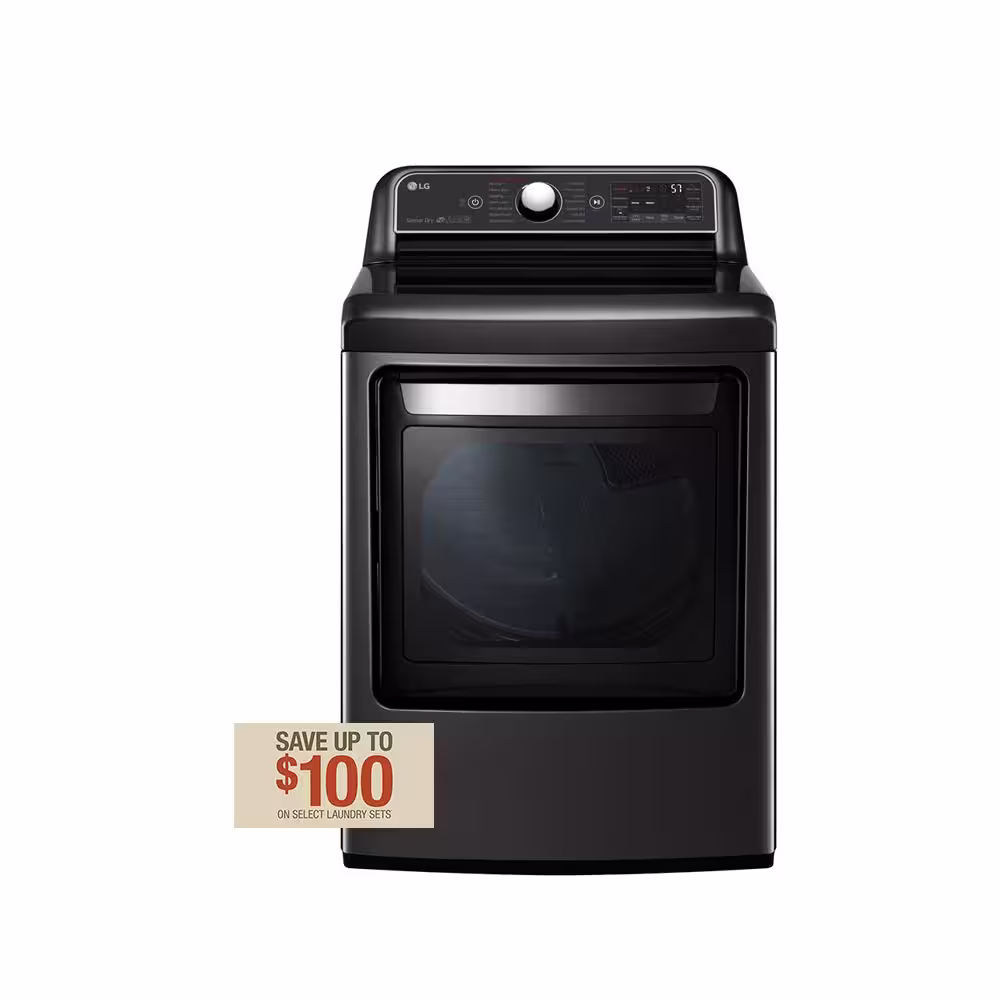 LG 7.3 Cu. Ft. Vented SMART Gas Dryer in Black Steel with EasyLoad Door, TurboSteam and Sensor Dry Technology