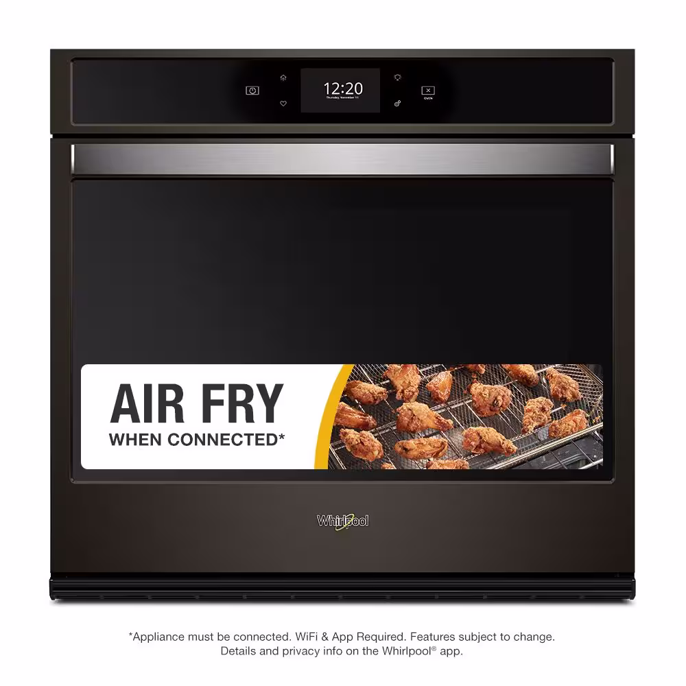 Whirlpool 30 in. Smart Single Electric Wall Oven with Air Fry, When Connected in Fingerprint Resistant Black Stainless Steel