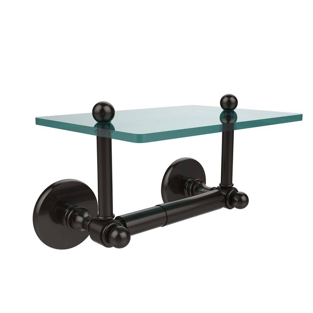 Allied Brass Prestige Skyline Collection Double Post Toilet Paper Holder with Glass Shelf in Oil Rubbed Bronze