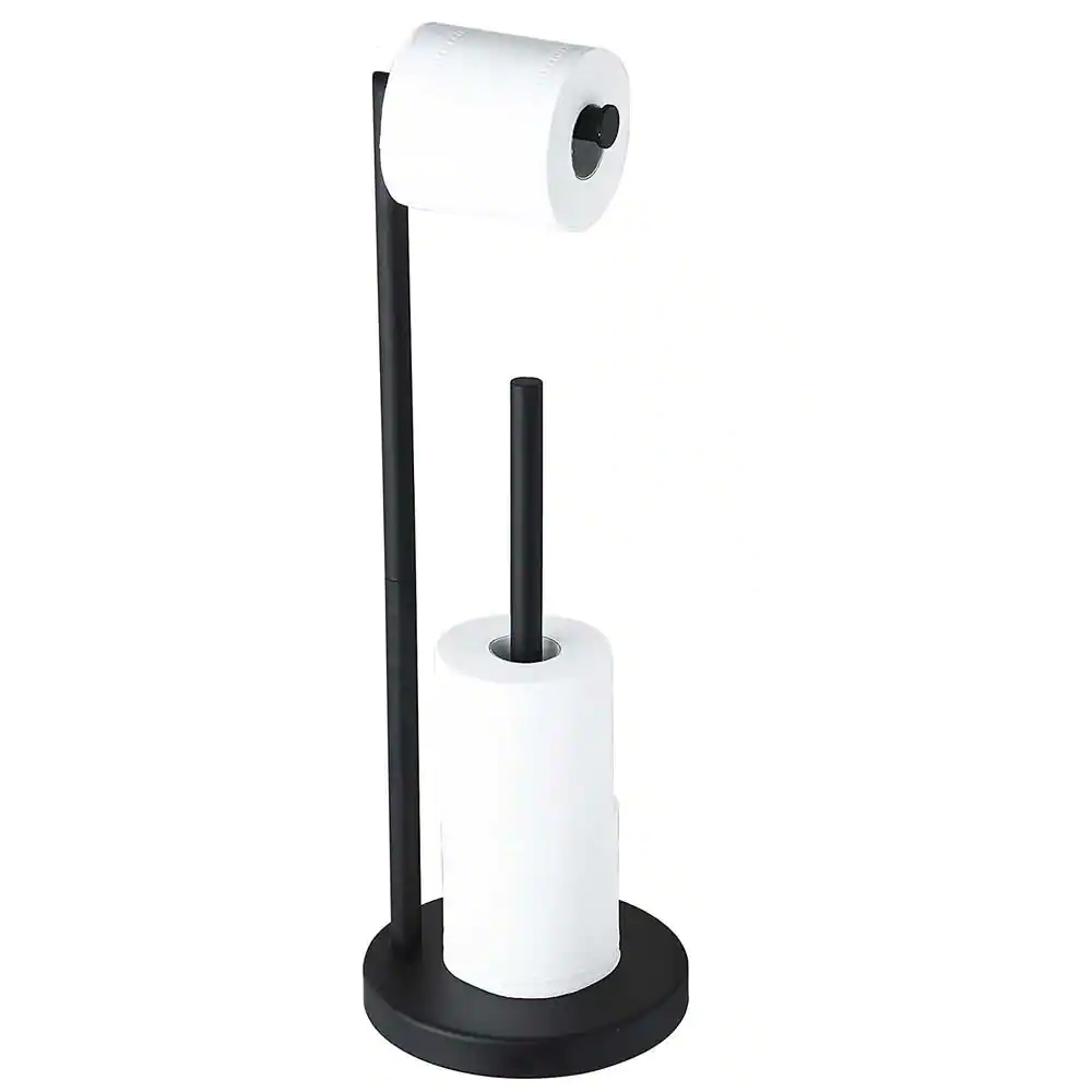 None Bathroom Freestanding Toilet Paper Holder Stand with Reserver in Matte Black