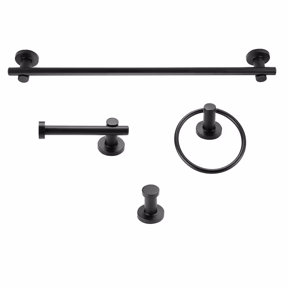 Globe Electric Napoli 4-Piece Bath Hardware Set with Towel Bar, Towel Ring, Robe Hook and Toilet Paper Holder in Matte Black