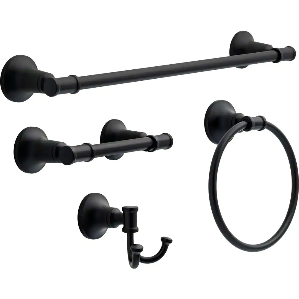 Delta Chamberlain 4-Piece Bath Hardware Set 24 in. Towel Bar, Toilet Paper Holder, Towel Ring, Towel Hook in Matte Black