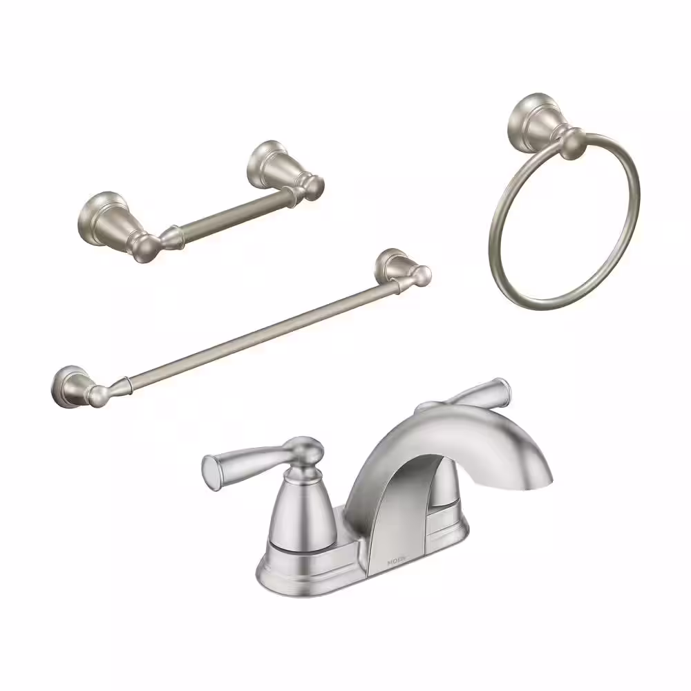 MOEN Banbury 4 in. Centerset 2-Handle Bathroom Faucet Combo Kit with 3-Piece Hardware Set in Spot Resist Brushed Nickel
