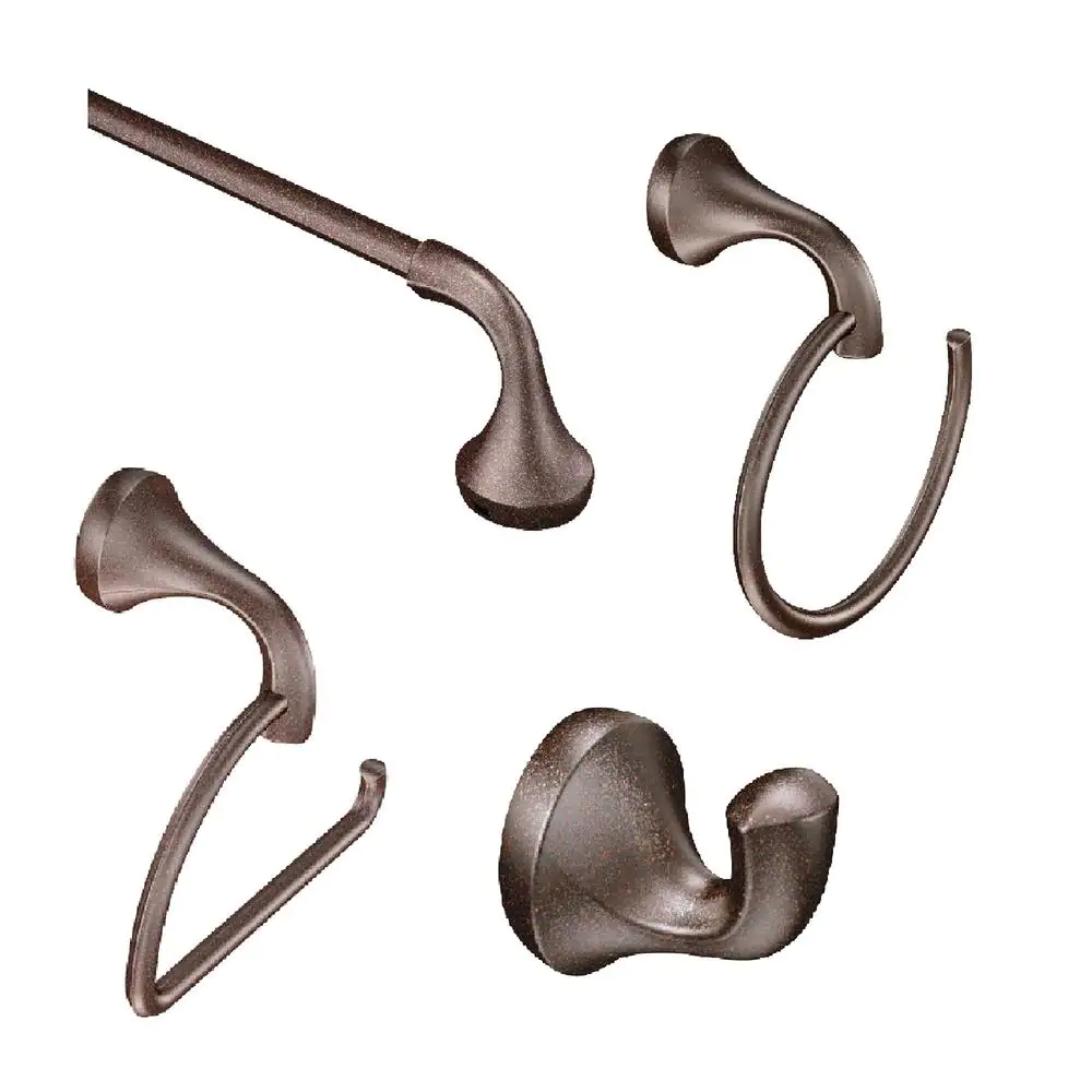 MOEN Eva 4-Piece Bath Hardware Set with 24 in. Towel Bar, Paper Holder, Towel Ring, and Robe Hook in Oil Rubbed Bronze