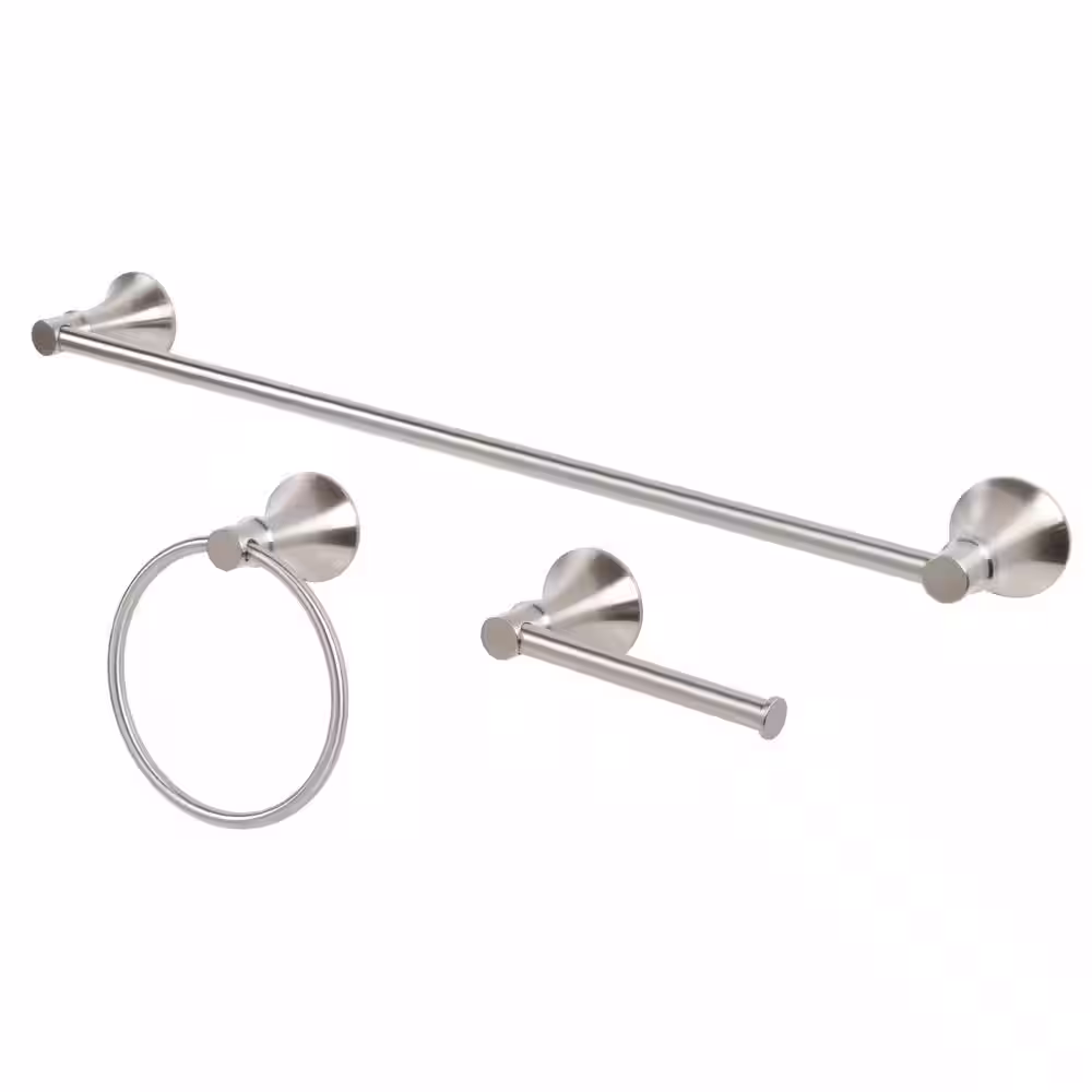 Glacier Bay Sadira 3-Piece Bath Hardware Set with Towel Bar Towel Ring and Toilet Paper Holder in Brushed Nickel