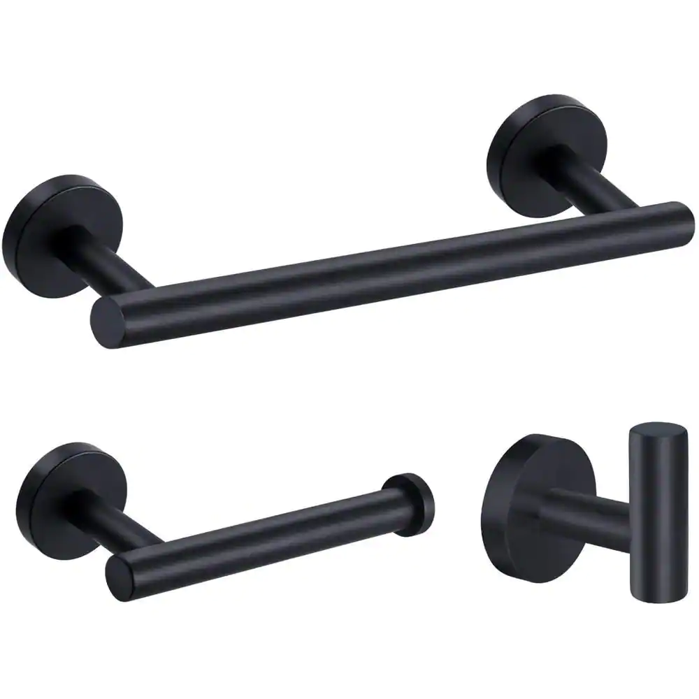ruiling Porter 3-Piece Bath Hardware Set with Towel Hook and Toilet Paper Holder and 12 in. Towel Bar in Stainless Steel Black