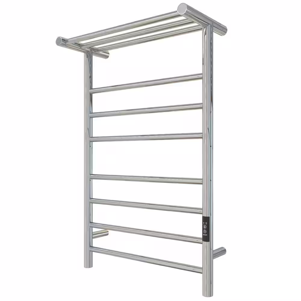 Ancona Prestige OBT 8-Bar Electric Wall Mount Plug-In and Hardwire Towel Warmer with On-Board Timer in Brushed Stainless Steel