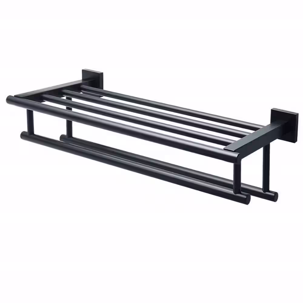 None 16 in. Bathroom Towel Rack with 2 Towel Bars Wall Mount Holder in Matte Black