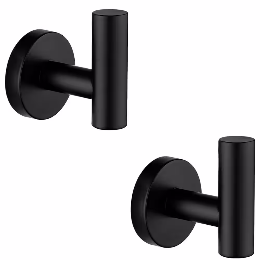 ruiling Round Bathroom Robe Hook and Towel Hook in Stainless Steel Matte Black (2-Pack)