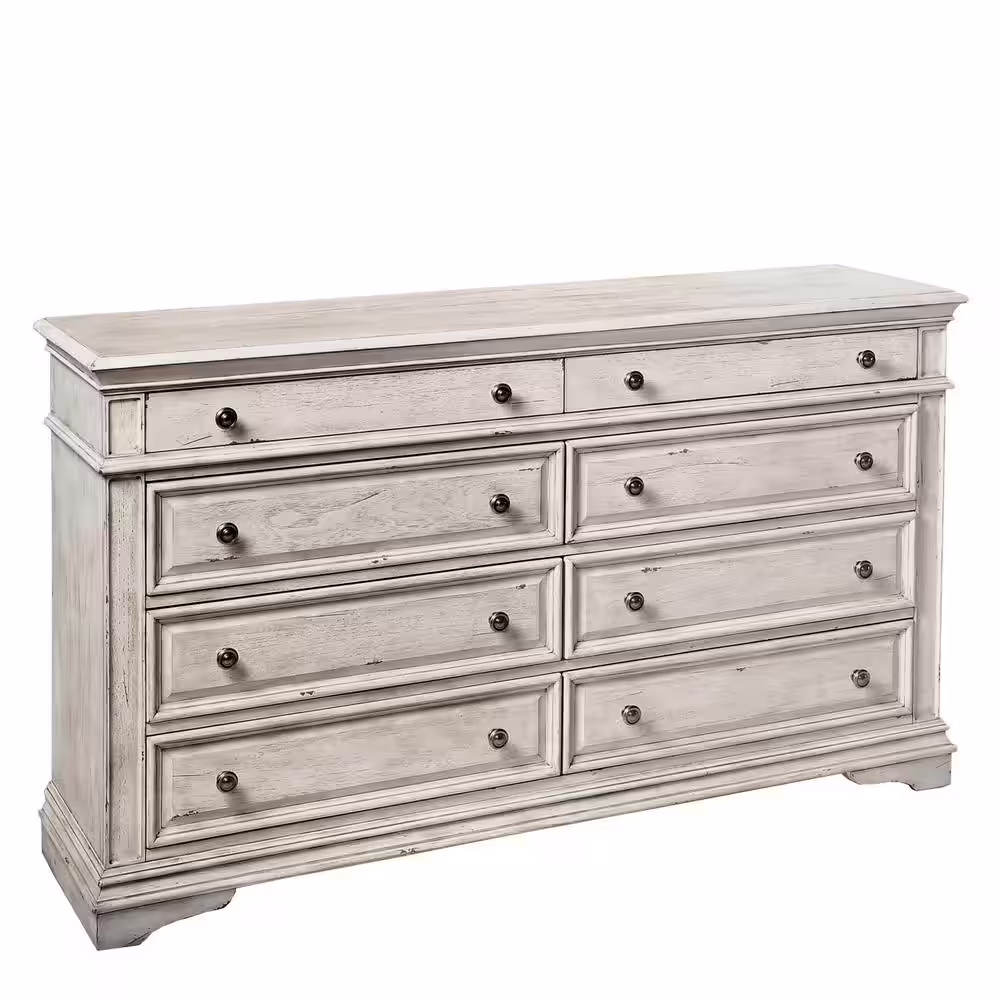 Steve Silver Highland Park 8-Drawer Rustic Ivory Dresser (66 in. Depth x 19 in. Width x 38 in. Height)