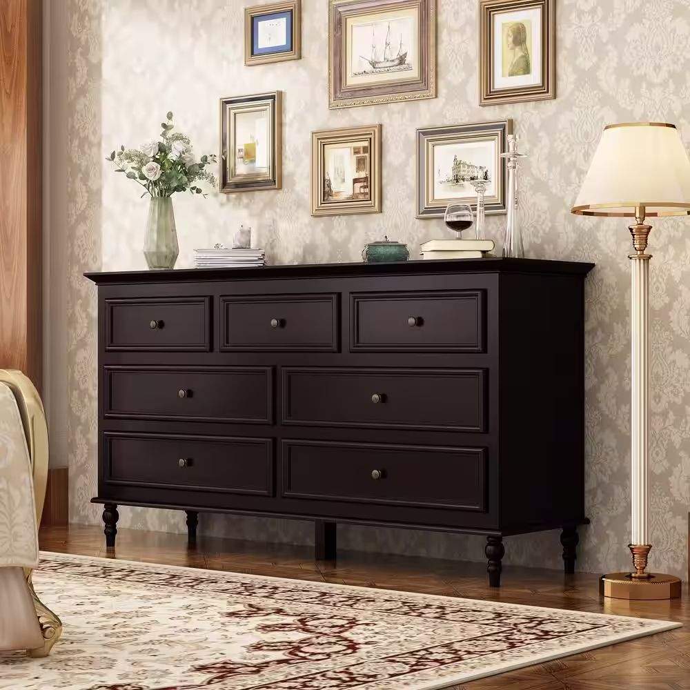 None 7-Drawer Brown Dresser Vanity Table Cupboard 29.6 in. H x 55.2 in. W x 15.7 in. D