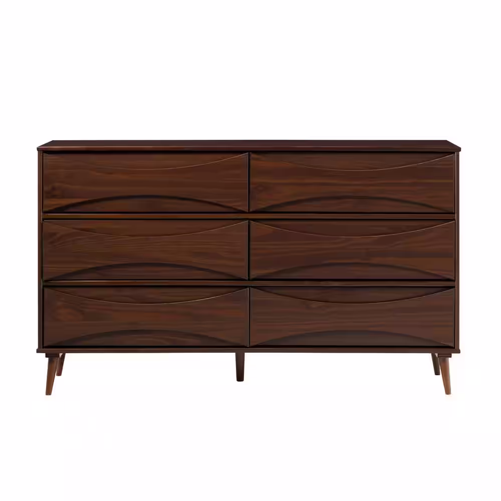Welwick Designs 6-Drawer Walnut Wood Mid-Century Modern Dresser with Curved Detailing
