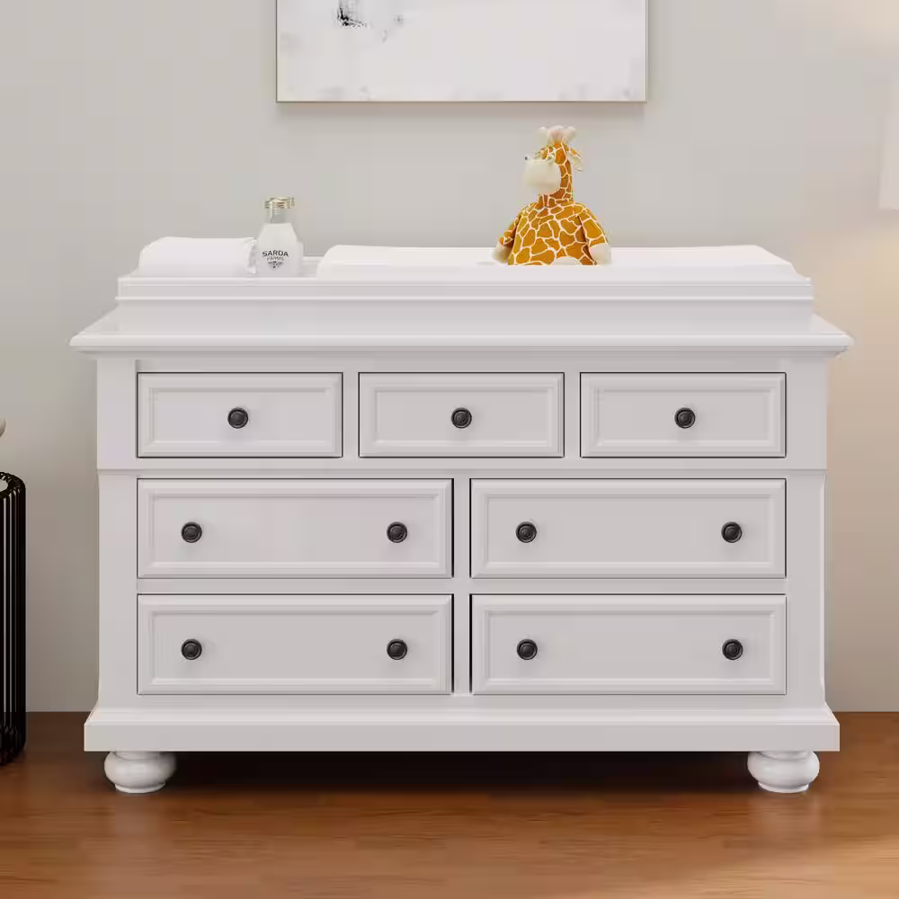 Harper & Bright Designs White Solid Wood 7-Drawer 55.9 in. Wide Multifunctional Dresser with Changing Table