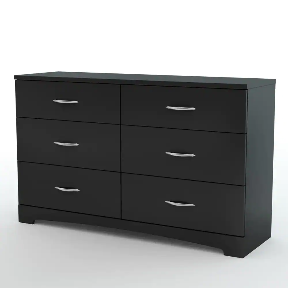 SAUDER Boulevard Cafe 6-Drawer Black Dresser with Vintage Oak Accents