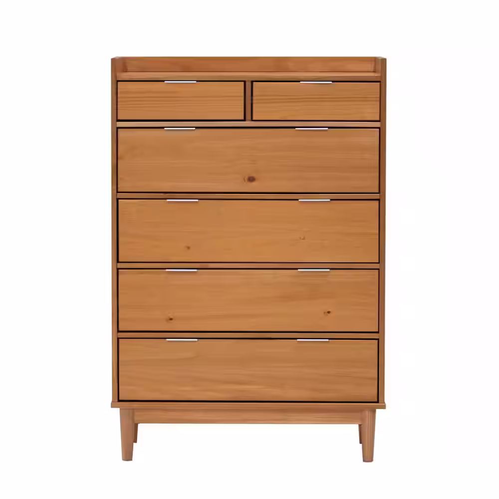 Welwick Designs 6-Drawer Caramel Solid Wood Mid-Century Modern Dresser with Tray Top (45 in. H x 30 in. W x 16 in. D)