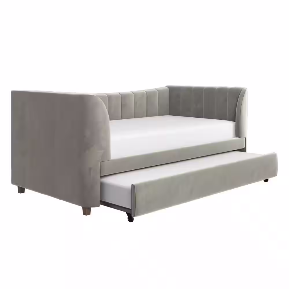 Little Seeds Valentina Gray Velvet Upholstered Twin Size Daybed with Trundle