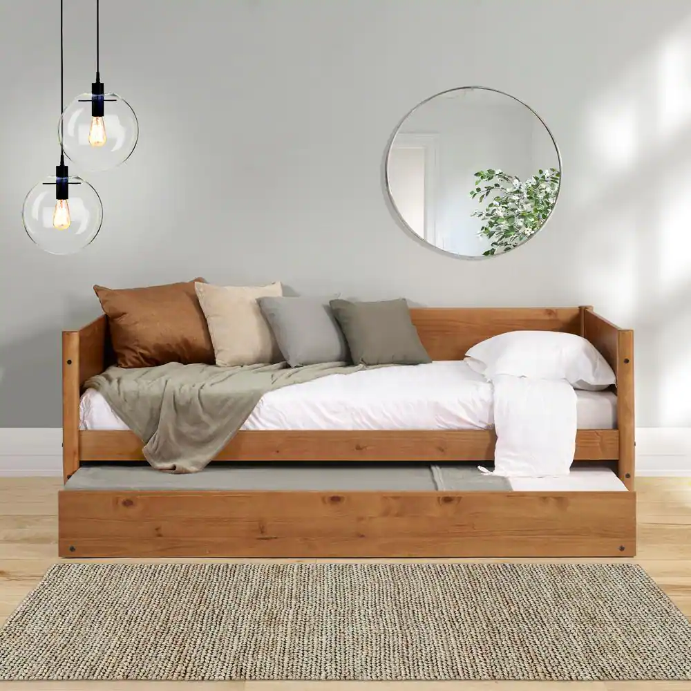Camaflexi Mid-Century Castanho Twin Size Daybed with Twin Size Trundle Bed