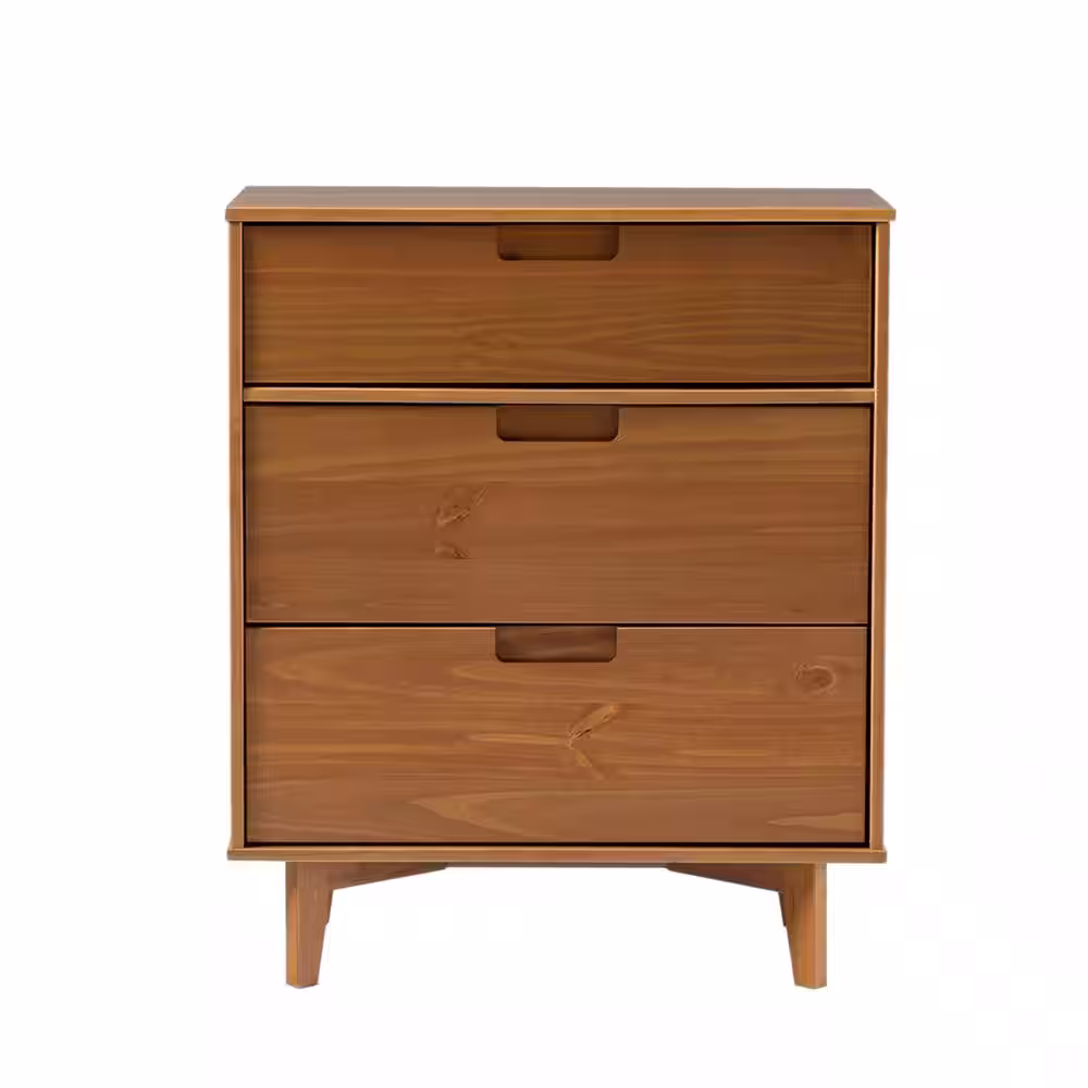 Walker Edison Furniture Company Sloane 3-Drawer Caramel Mid-Century Modern Solid Wood Dresser