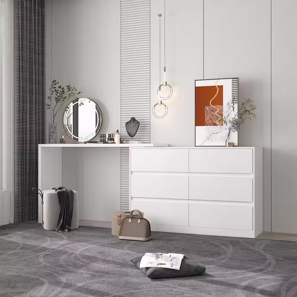 None 6-Drawer L-Shaped Chest of Drawers Cabinet with Rotatable Desktop 47.2 in. W x 51.2 in. D x 32.7 in. H
