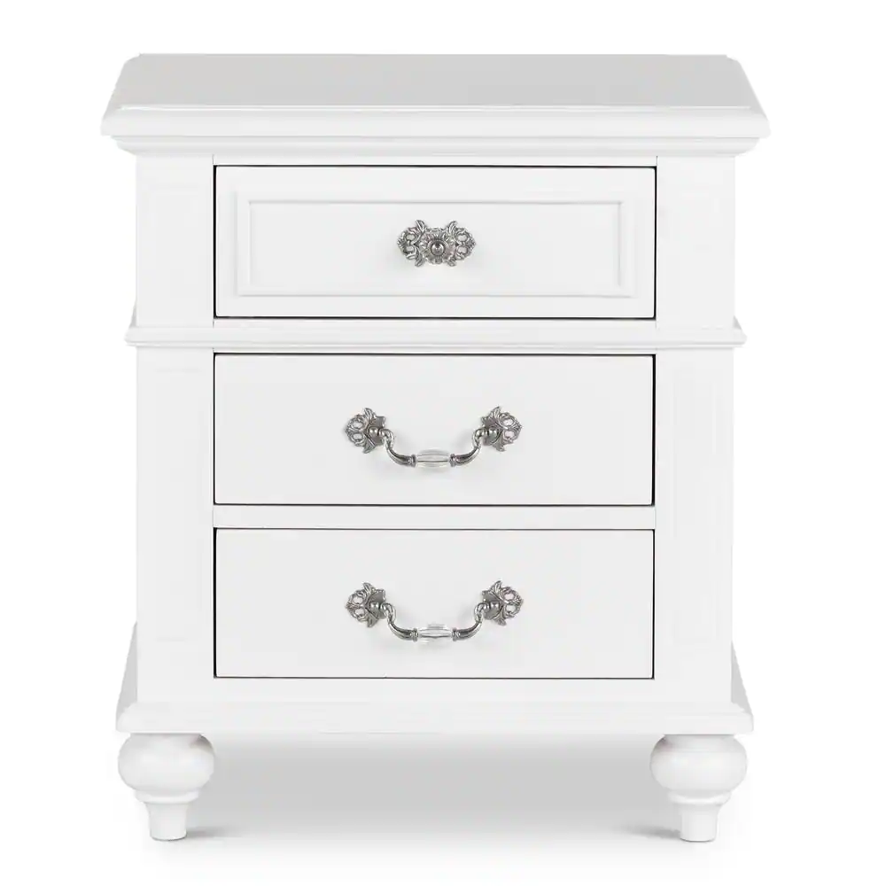 None 3-Drawer White Wood Nightstand End Table 30.3 in. W x 32.3 in. H x 15.7 in. D