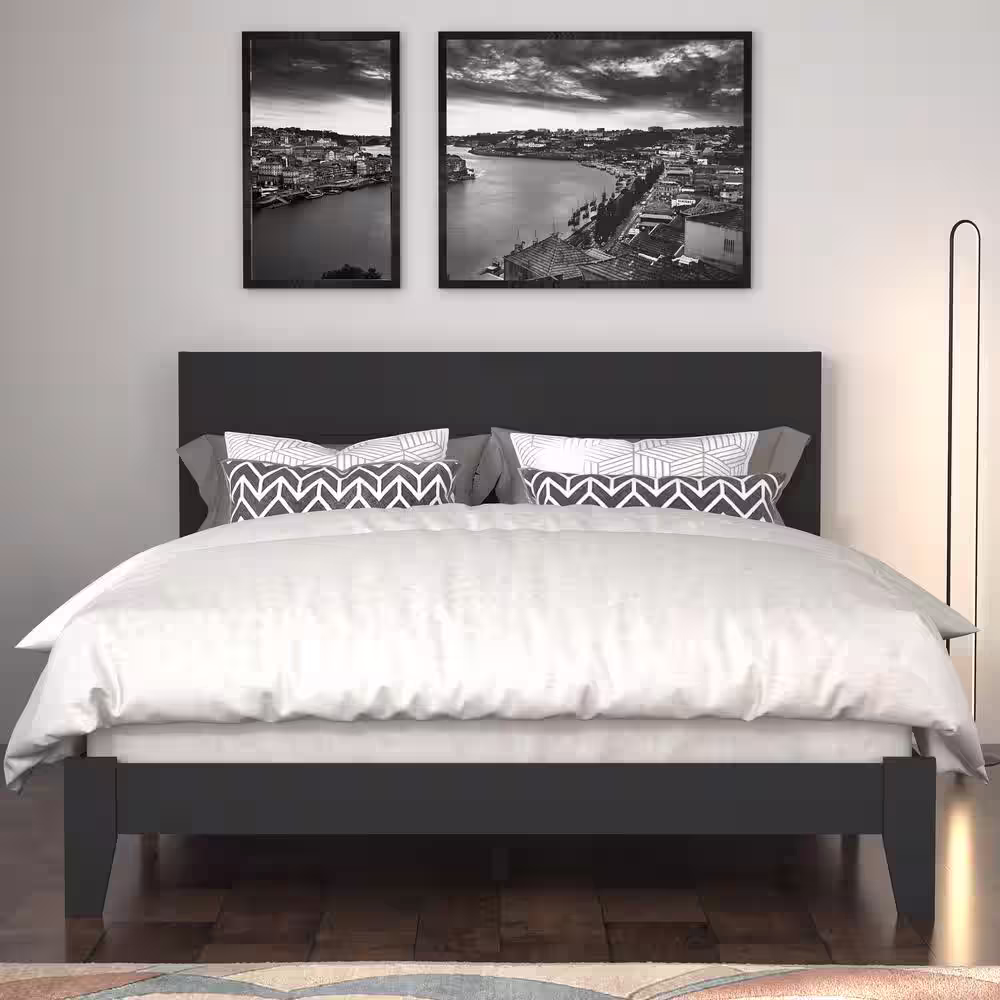 GALANO Layton Black Wood Frame Queen Platform Bed with Headboard (84.0 in. x 64.2 in. x 40.2 in.)