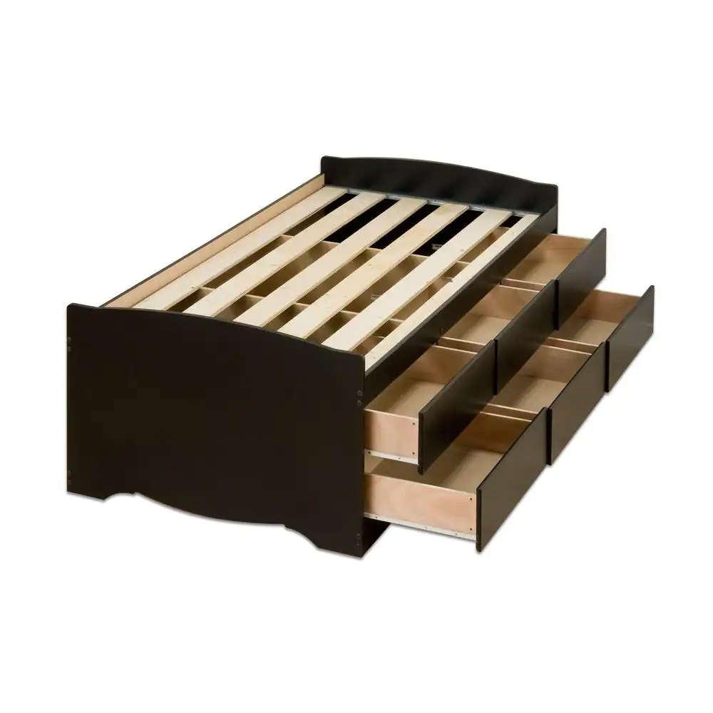 Harper & Bright Designs Walnut Twin Size Platform Storage Solid Wood Bed with 6-Drawers