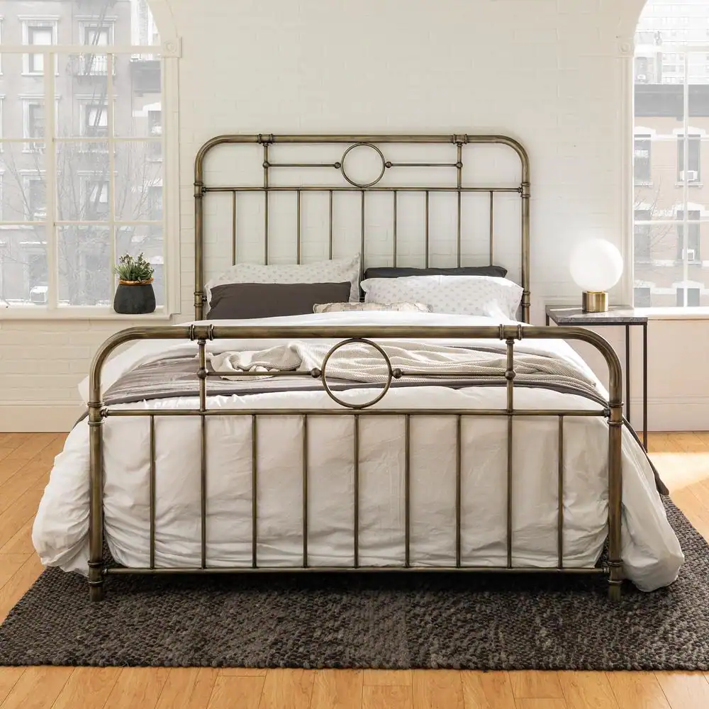 Walker Edison Furniture Company Rustic Bohemian Metal Pipe Queen Bed-Antique Bronze