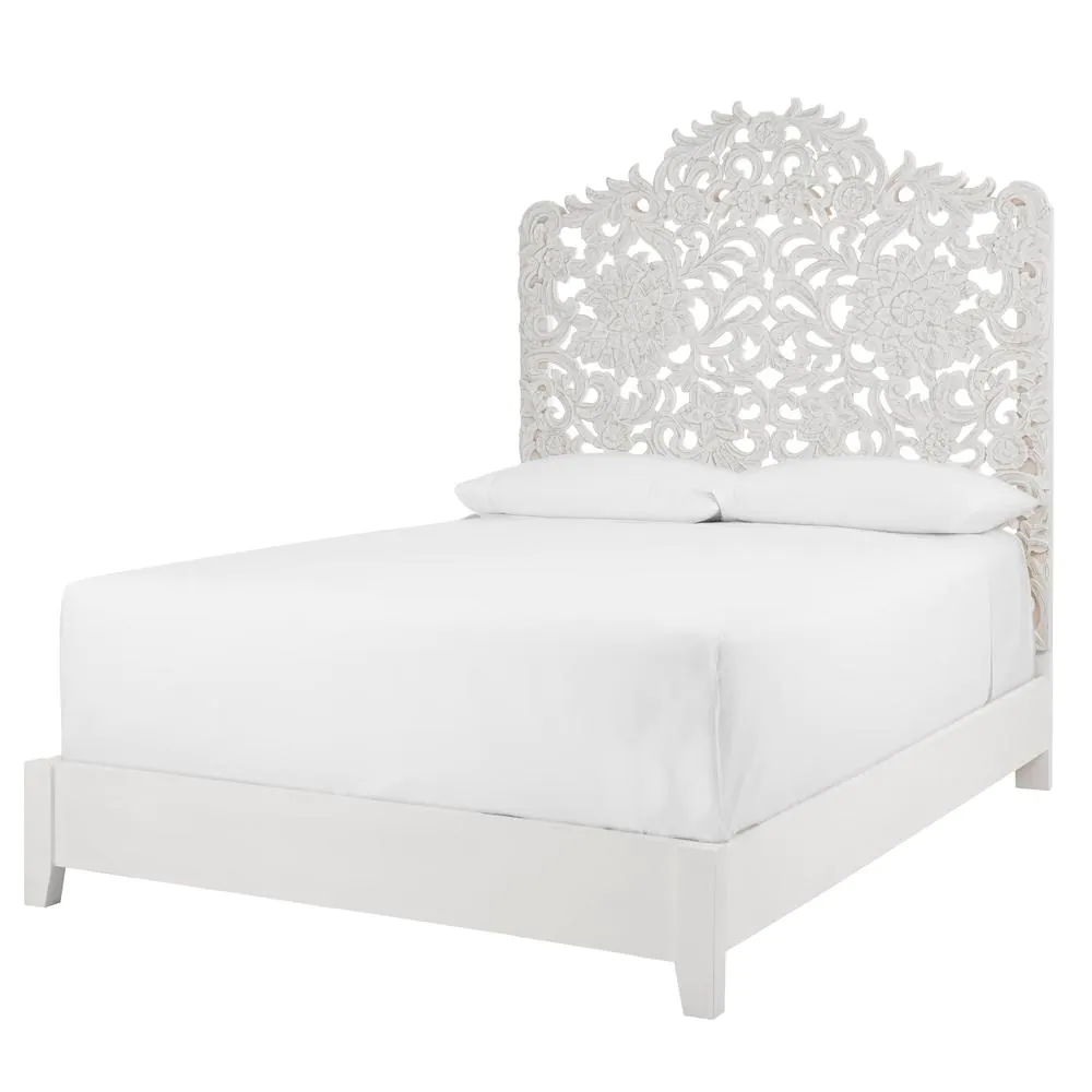 Home Decorators Collection Nadia Carved Whitewash Queen Bed with Arch