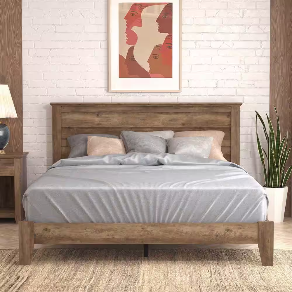 GALANO Harlowin Knotty Oak Wood Frame Queen Bed With Headboard