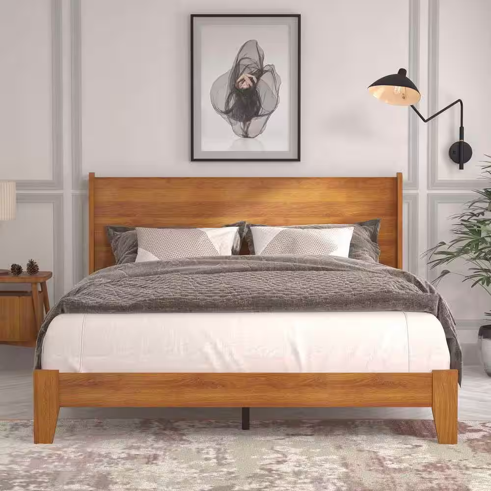 GALANO Abby Retro Amber Walnut Wood Frame Queen Bed With Headboard
