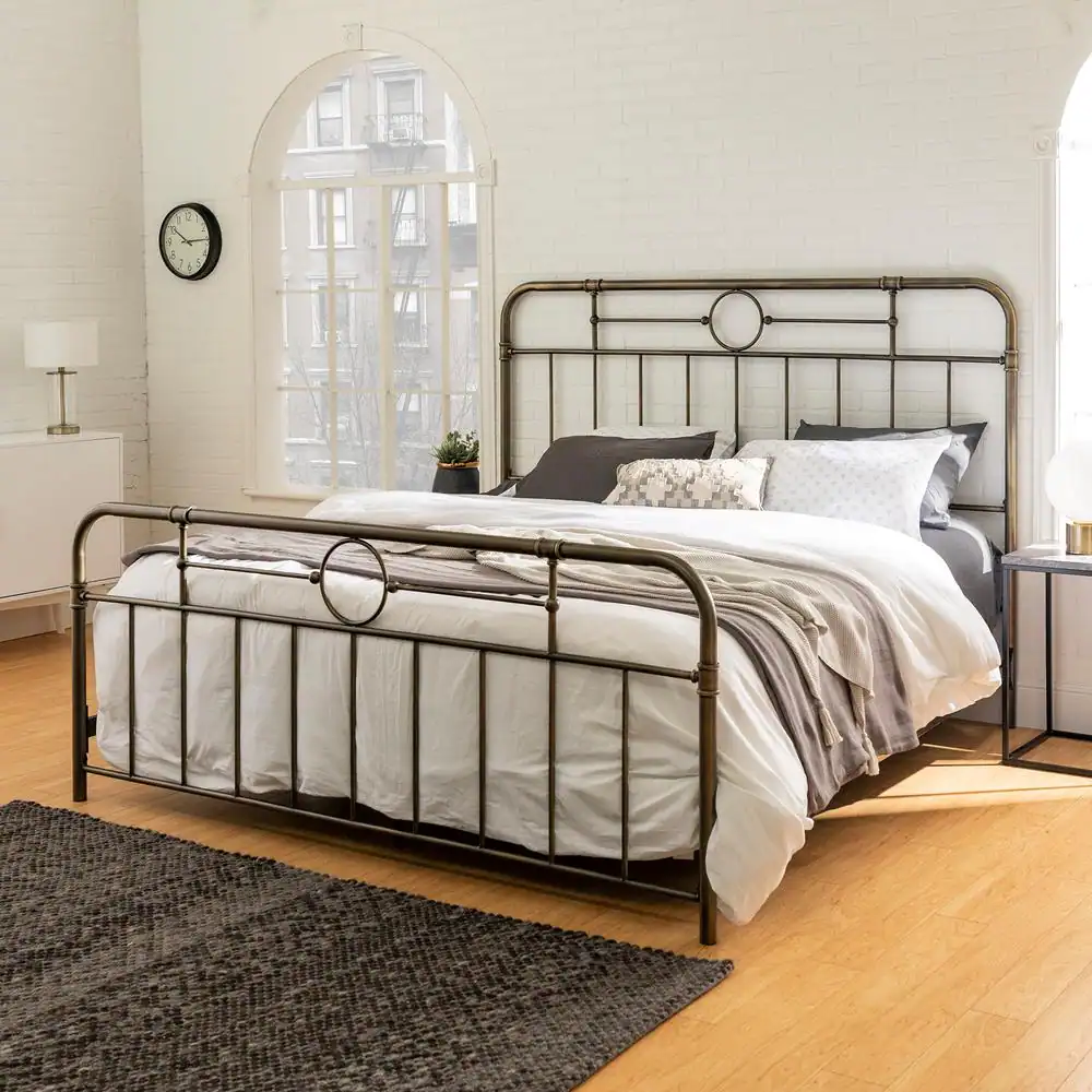 Walker Edison Furniture Company Rustic Bohemian King Size Metal Pipe Bed - Antique Bronze