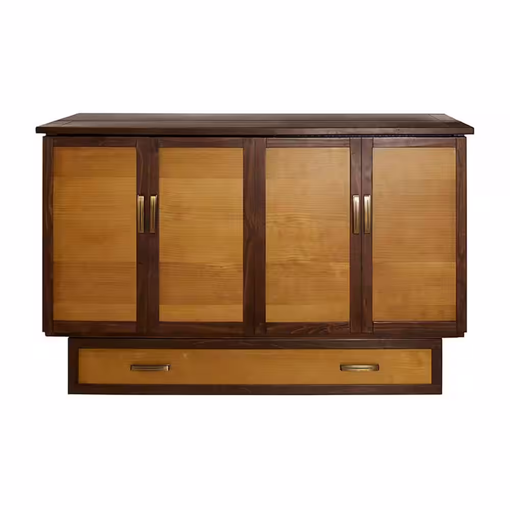 None Northfield Walnut Solid Wood Frame Full Murphy Bed with Mattress and Built In Charging Station