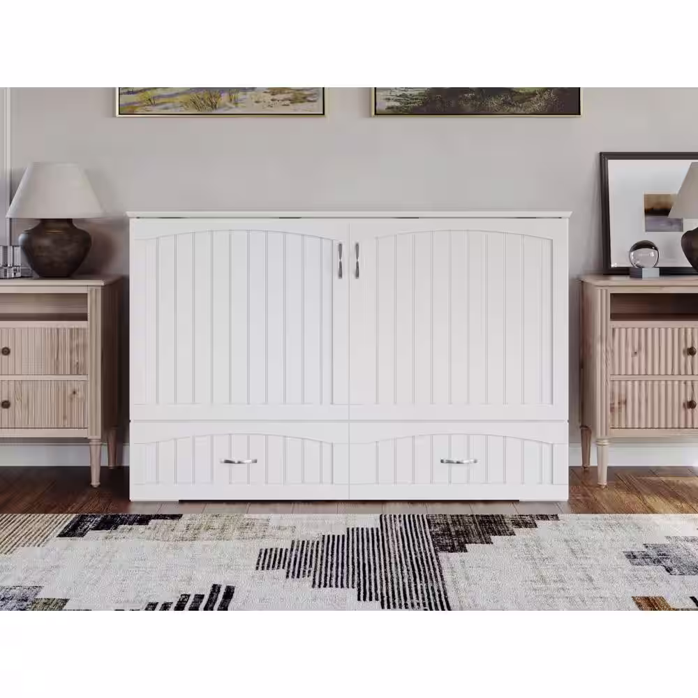 None Nantucket White Murphy Bed Chest with Full Mattress