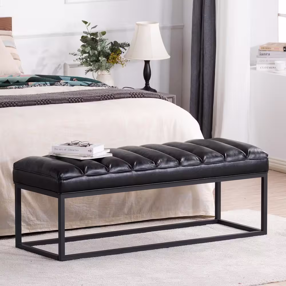 Harper & Bright Designs Black 53.54 in. PU Upholstered Bedroom Bench, Entryway Bench with Metal Base
