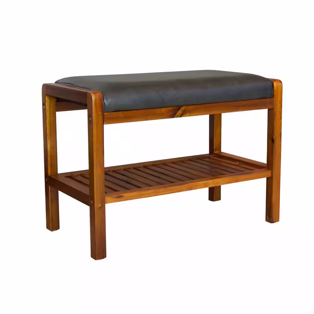 None Dark Mahogany Bench with Slatted Shelf 17 in. H x 23.75 in. W x 12.5 in. D