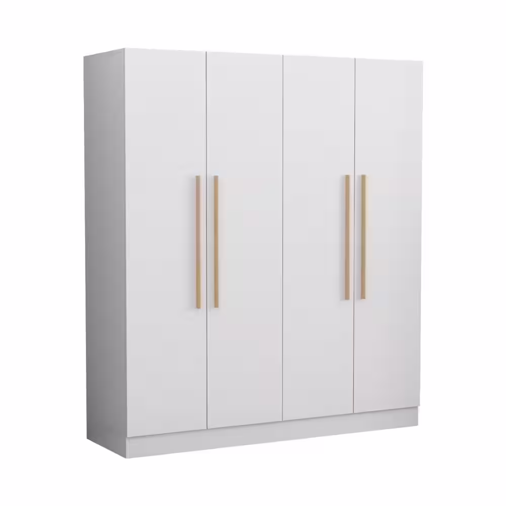 None 1-Piece White Wood Armoires, Hanging Rod, Storage Shelves (70.9 in. H x 63 in. W x 19.7 in. D) Bedroom Set with 4-Door
