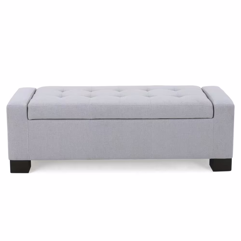 Noble House Guernsey Light Gray Fabric Storage Bench