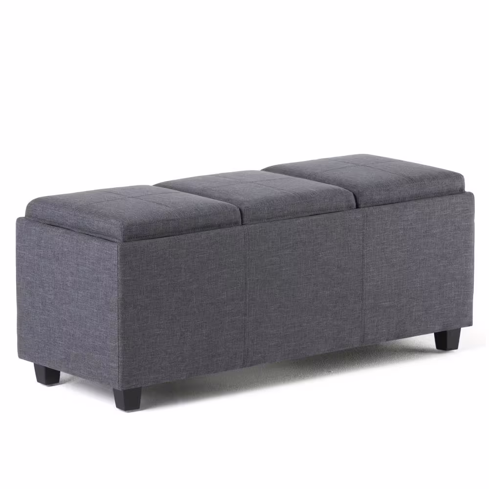 Simpli Home Avalon 42 in. Wide Contemporary Rectangle Storage Ottoman in Slate Grey Linen Look FabricBedroom Bench